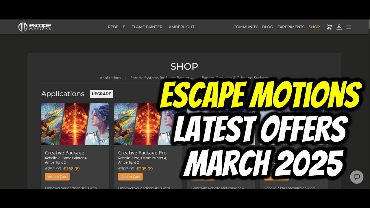 Creative Package : A special price is offered today for Rebelle 7 , Flame Painter 4 (with 3 default particle systems) , and Amberlight 2 . Perfect for artists looking to explore natural painting techniques and dynamic particle effects.